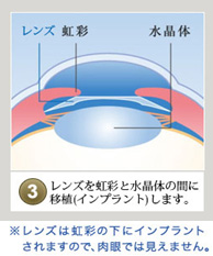 このほか、将来白内障になった場合はレンズを取り出して、白内障の治療をします。この際、ICLを受けた方の場合はレンズを取り出せば目が術前の状態に戻るので白内障用眼内レンズの度数決定は通常の計算式で問題なく行えます。